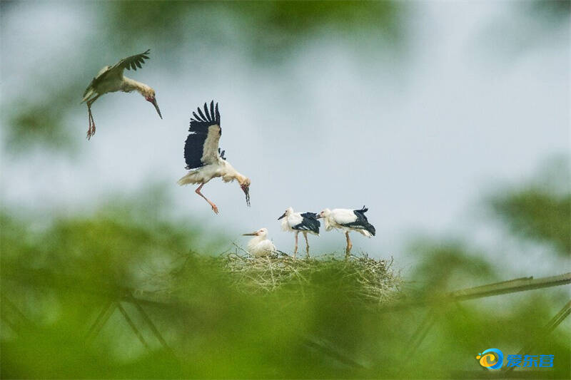 东方白鹳觅食回巢。通讯员 张兆栋